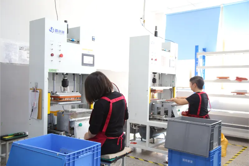 1. Cúiteamh Strus an Dearaidh: Ag baint úsáide as FEA chun an comhchoinníoll oibriúcháin "comhbhrú + creathadh" a insamhail, rinneadh na liopaí ina saothraítear rónta ag suíomhanna an phoill imeallaigh a thiús faoi 0.1 mm; ag an am céanna, laghdaíodh trastomhais na bpoll múnla comhfhreagracha 0.005 mm, rud a d'eascair dáileadh strus cothromaithe nádúrtha tar éis mhúnlú.
